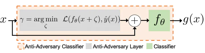 Deep neural networks are vulnerable to small input perturbations known as adversarial attacks. Inspired by the fact that these adversaries are constructed by iteratively minimizing the confidence of a network for the true class label, we propose the anti-adversary layer, aimed at countering this effect. In particular, our layer generates an input perturbation in the opposite direction of the adversarial one and feeds the classifier a perturbed version of the input. Our approach is training-free and theoretically supported. We verify the effectiveness of our approach by combining our layer with both nominally and robustly trained models and conduct large-scale experiments from black-box to adaptive attacks on CIFAR10, CIFAR100, and ImageNet. Our layer significantly enhances model robustness while coming at no cost on clean accuracy.